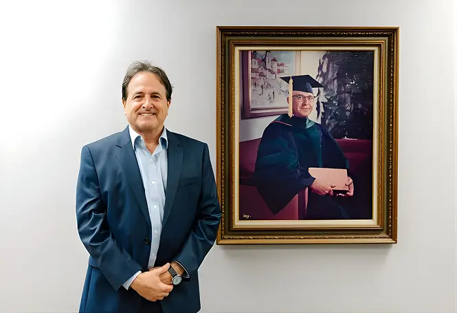 In the Photographed here is his grandson, Dr. Donald Hauser, is shown standing beside the portrait of Dr. Abe Hauser. Today, Dr. Donald Hauser proudly continues his grandfather’s legacy, carrying forward more than six decades of commitment to advancing mental health care and providing compassionate treatment to the community.
